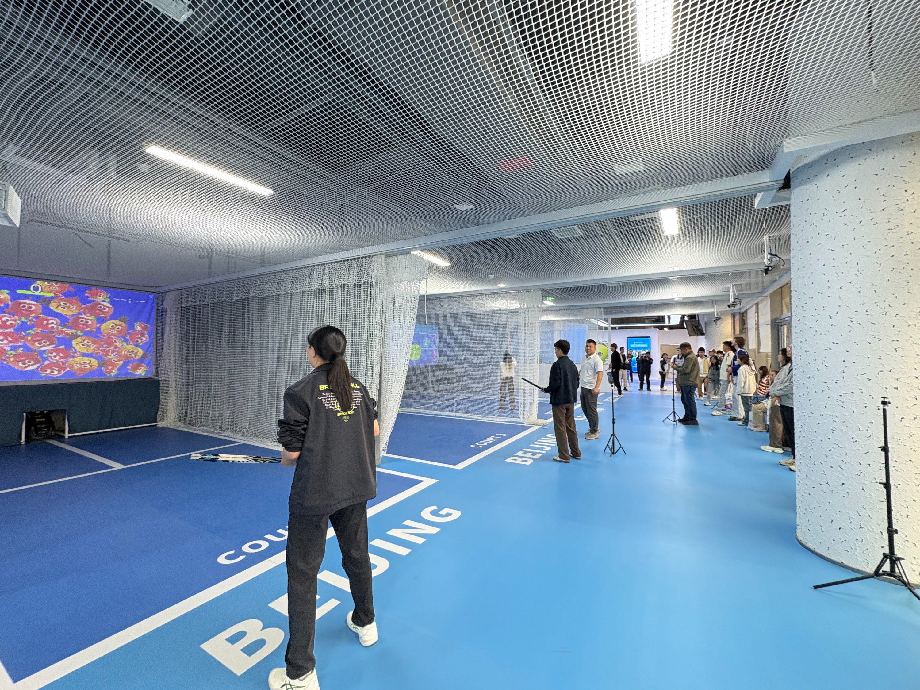 在首创钻石球馆中的沉浸式学习后,同学们又来到了国网 Ai 学练中心,开启了一场别开生面的网球体验之旅。在这里,大家有机会亲身体验到先进的 Ai 网球教练系统,它宛如一位智能化的专属教练,为同学们带来了前所未有的学习体验。