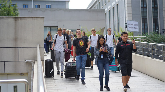 9月15日下午,95名德国师生陆续抵达我校,在办理入住、就餐之后,一行人在国际交流办公室老师和学生志愿者的带领下,分组参观188博金宝网站官网校园设施,并熟悉牛栏山地区周边环境。当晚,两国师生齐聚国际交流中心自助餐厅品尝中国美食,畅聊各自喜好,熟悉彼此。